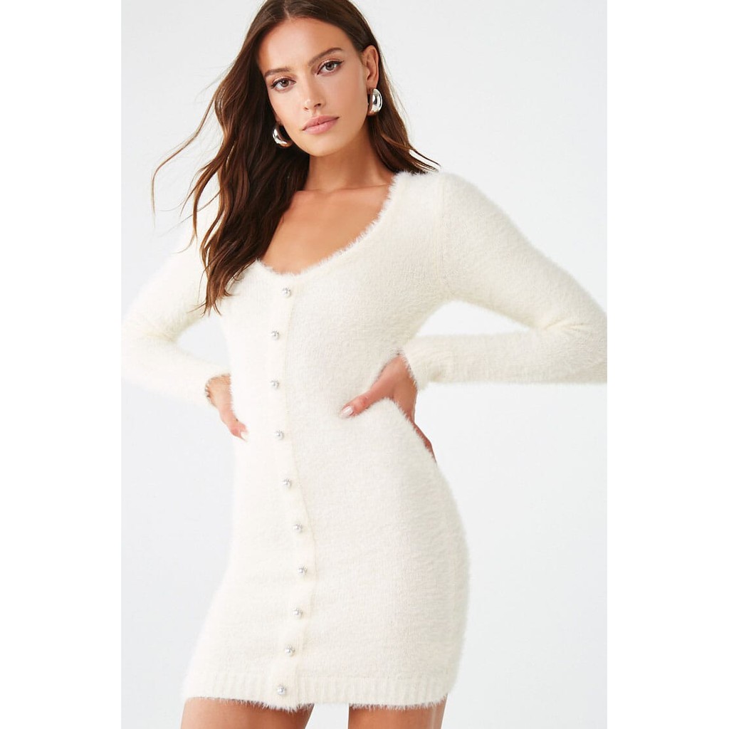 Forever 21 Women S Fuzzy Faux Pearl Sweater Dress Cream Shopee Philippines